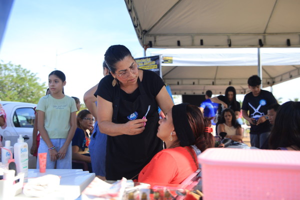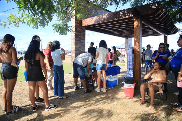 Em outro espaço do evento, conversas importantes aconteciam. Mulheres se reuniam para falar sobre proteção, respeito e liberdade. Segundo a coordenadora da Coordenadoria de Políticas Públicas para Mulheres, Anne Cleyanne, muitas vezes o primeiro passo é simplesmente ouvir. “Hoje estamos batendo um papo sobre medidas protetivas, ciclos de violência e também fazendo acolhimento. Muitas vezes a mulher precisa de uma palavra de incentivo, de apoio, de um abraço. Estamos conversando sobre a diferença entre cantada e assédio, para que elas possam se sentir seguras com suas decisões, com seu corpo. Tudo aquilo que constrange a mulher é violência.”